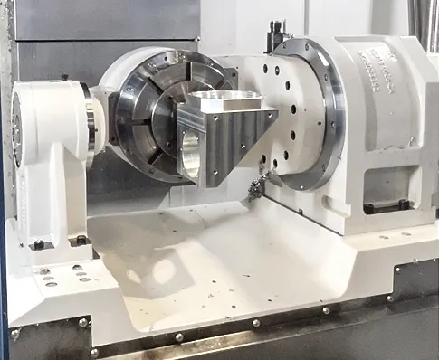 Dalam lingkungan pemrosesan khusus, benda kerja dapat dijepit secara langsung dengan mengatur lubang proses, atau terhubung dengan benda kerja melalui baki, dan lima sisi dapat diproses pada satu waktu, menghilangkan proses tradisional yang kompleks.